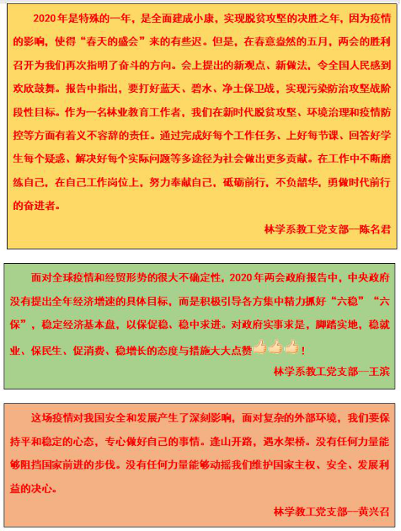 对于2020年“两会”,支部党员发出的心声。