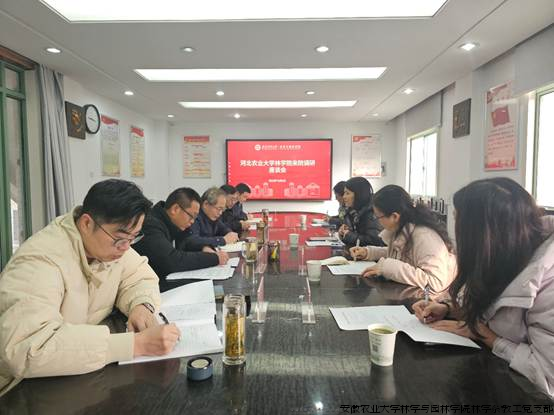 12月6日上午,河北农业大学林学院党委书记李会平一行来院开展党建工作调研,学院党委书记江正君、原林学系教工党支部书记王滨、林学系教工党支部书记唐雪海、艺术设计系教工党支部书记殷石及学院党建工作联络员参会,会议由江正君主持。