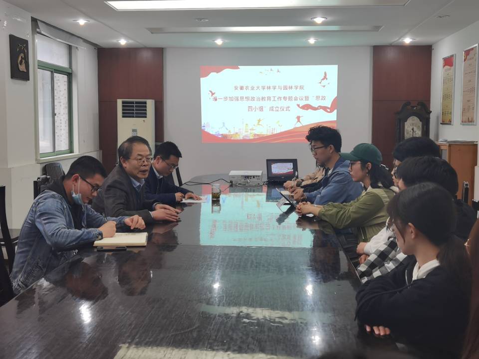 4月2日下午在林学楼二楼第一会议室召开进一步加强思想政治教育工作专题会议暨“思政四小组”成立大会。学院党委书记江正君、副书记谈应权、团委老师及“思政四小组”成员参加会议。会议由学院党委副书记谈应权主持。