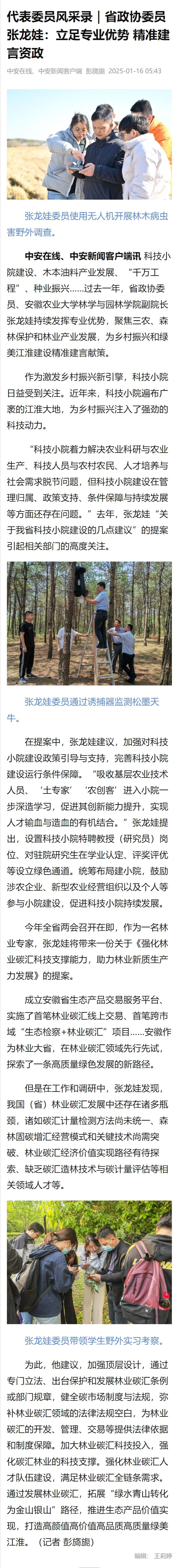 学院副院长张龙娃作为省政协委员,多年来,持续发挥专业优势,关注森林保护和林业产业发展,为乡村振兴和绿美江淮建设精准建言献策。