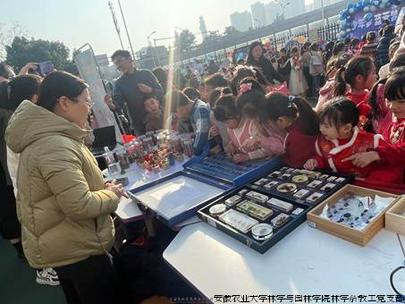 为全面贯彻落实党的二十届二中全会精神,深入学习贯彻习近平总书记考察安徽重要讲话精神,进一步推进全国“双带头人”教师党支部书记“强国行”专项行动团队建设内容,2024年12月31日,林学系教工党支部组织党员走进合肥市乐农新村小学教育集团奥林校区,参加第二届科创嘉年华游园会活动,为小学生开展林学专业科普知识宣传。