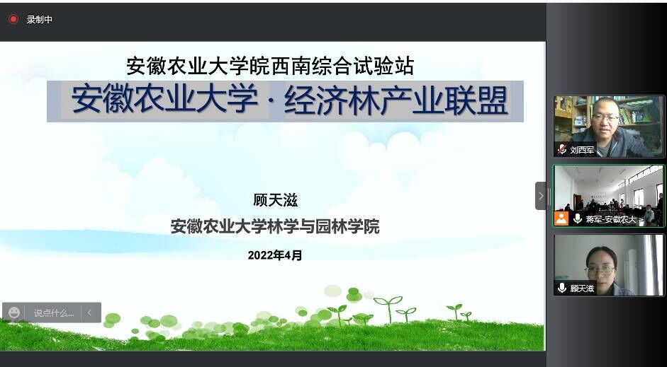 4月29日,安徽农业大学皖西南实验站经济林产业联盟举行怀宁县“两强一增”线上线下结合系列技术培训班开班仪式,由安徽农业大学皖西南试验验站站长蒋军主持。安徽农业大学新农村研究院常务副院长王华君、怀宁县林业局副局长、经济林联盟首席专家刘西军副教授、经济林联盟专家顾天滋博士、高级工程师凌遵海以及经济林企业负责人共27人参加了开班仪式。