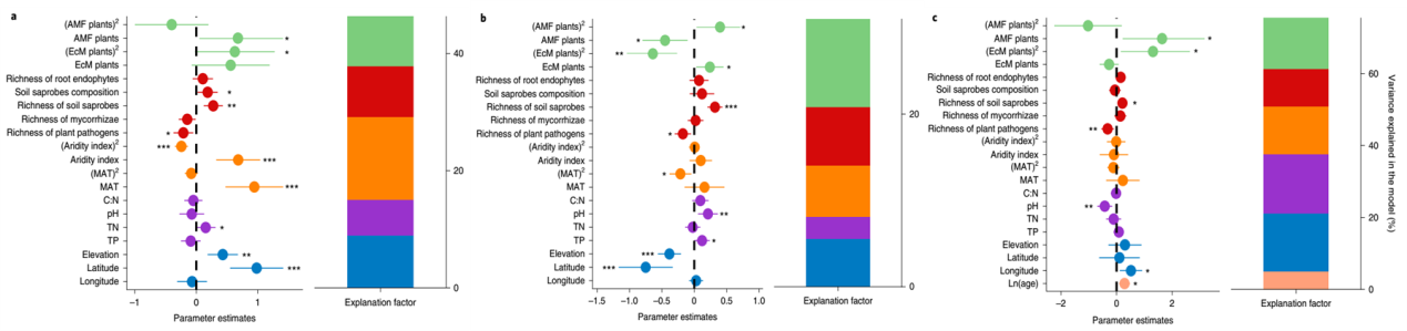 生物多样性与生态系统功能稳定性之间的关系是当代生态学领域的重大科学问题之一。过去研究多关注地上植物多样性在生态系统功能稳定性上的重要作用及其维持机制,而地下生物类群尤其是真菌多样性与生态系统稳定性之间的关系仍然不够清晰。相较于土壤其他生物类群,真菌功能类群和生态策略更为多样化,这些不同功能类群如腐生真菌,病原真菌和菌根真菌等在植物生产力维持、有机碳的积累和转化等关键生态过程和功能上发挥着重要且不可替代的作用。因此,在全球尺度上探讨真菌不同功能类群多样性与生产力稳定性之间的关系对通过调节土壤生物多样性来维持未来生态系统功能稳定,降低全球气候变化对生态系统结构和功能产生的消极影响具有重要的意义。
