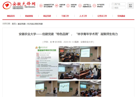 2020年5月6日至8日,安徽农业大学林学与园林学院报告厅内正在举办着一场场学术报告会,精彩的报告、热烈的讨论,一次次将首届“林学青年学术周”活动推向高潮。“林学青年学术周”的宗旨是:“强化学术氛围,加强相互交流,促进青年教师成长,助推学科交叉合作,引导学生专业学习,培育知林爱林情怀”。本次“林学青年学术周”是林学系教工党支部充分发挥支部在人才培养、学科建设、科学研究、社会服务等主体工作中的作用的一次有益尝试,也是支部特色与品牌创建的一个重要举措。
