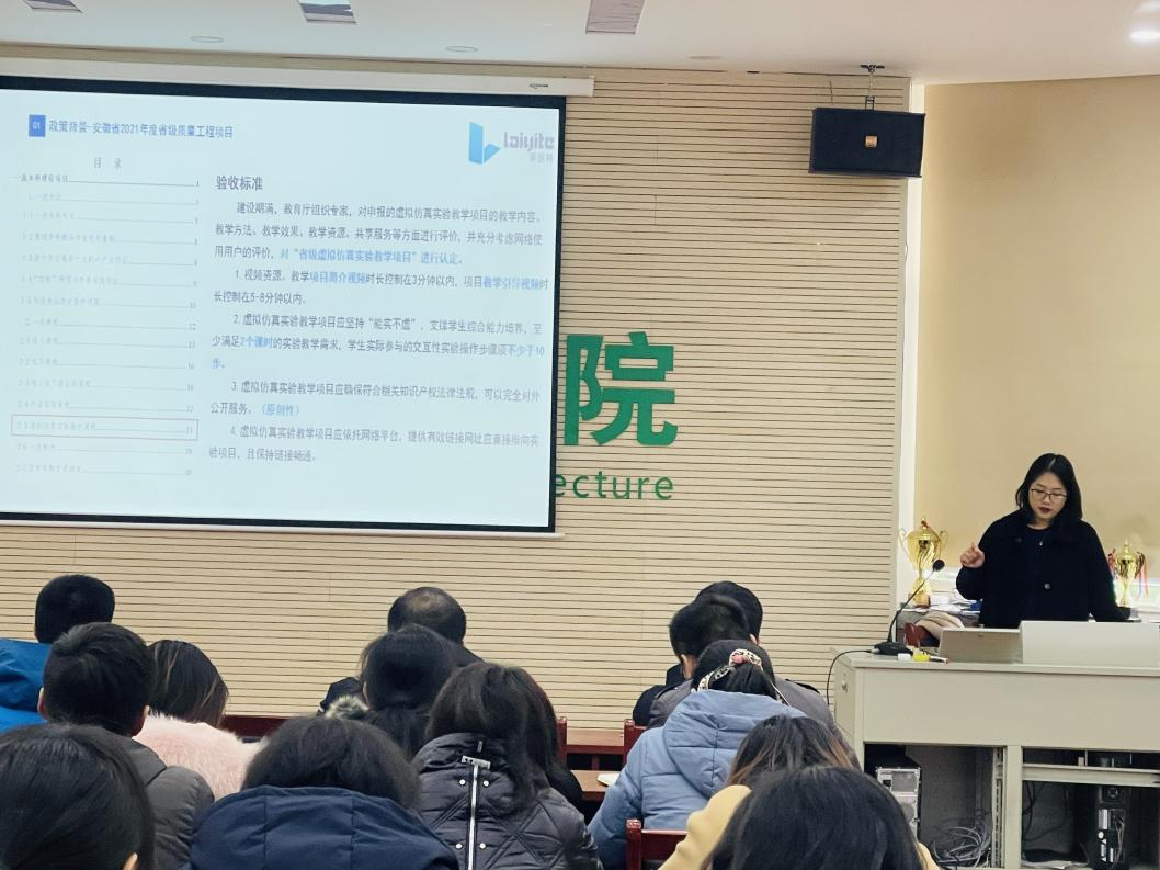 会上,培训专家从虚拟仿真实验教学一流课程的申报、选题、设计、建设等多个角度进行解析,展示了典型的合作案例,介绍了项目建设的合作形式和开发流程,并解答了老师们的疑问。